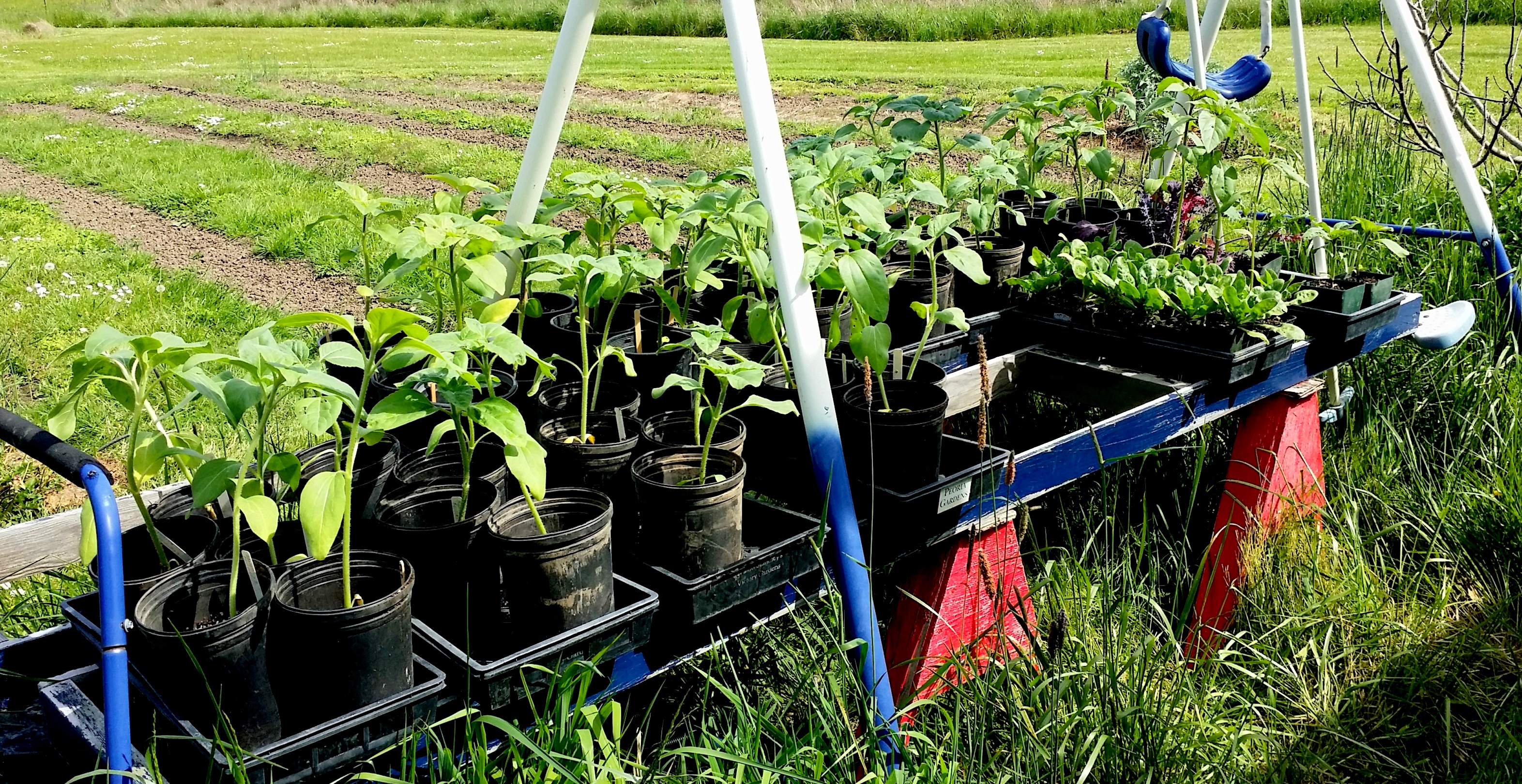 our tomato-starts in their greenhouse this spring. Thanks to Patty